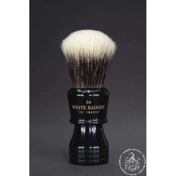 "The Swabia" 24mm Fan Shape - White Badger Hair Shaving Brush in Faux Ebony